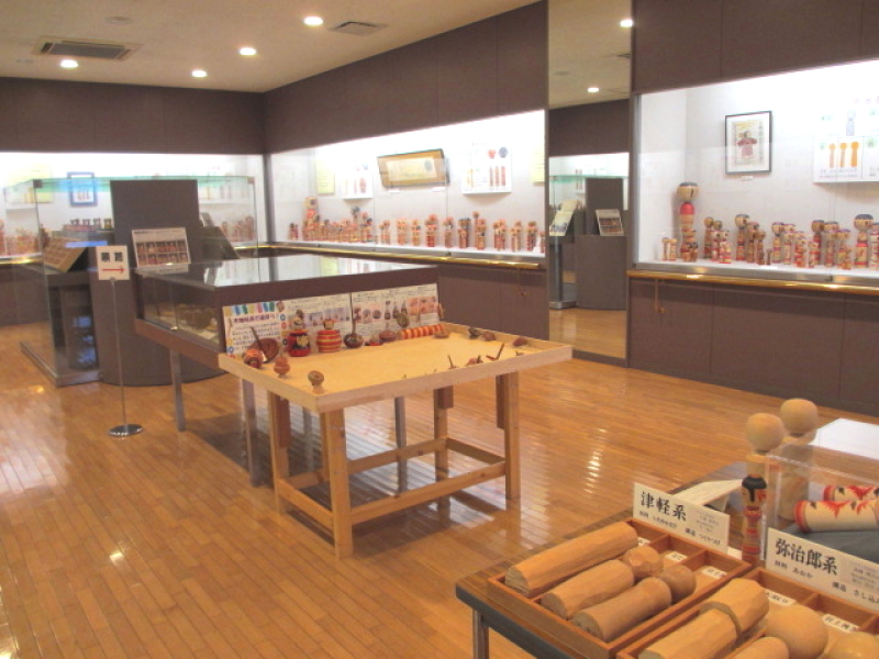 伝統こけしの産地別の特徴や歴史、作り方、 材料などを紹介しています。 また、こけし工人が作る様々な独楽も紹介しており、 実際に遊んで体験することもできます。